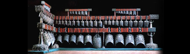 曾侯乙编钟,战国早期物件,出土后成为中国首批禁止出境展览文物。曾侯乙编钟是由六十五件青铜编钟组成的庞大乐器,其音域横跨五个八度,并且齐备十二个半音,其高超的铸造技术和良好的音乐性能,不仅改写了中国音乐史,也改写了世界音乐史,被中外专家跟学者誉为“稀世珍宝”,现收藏在湖北省博物馆。